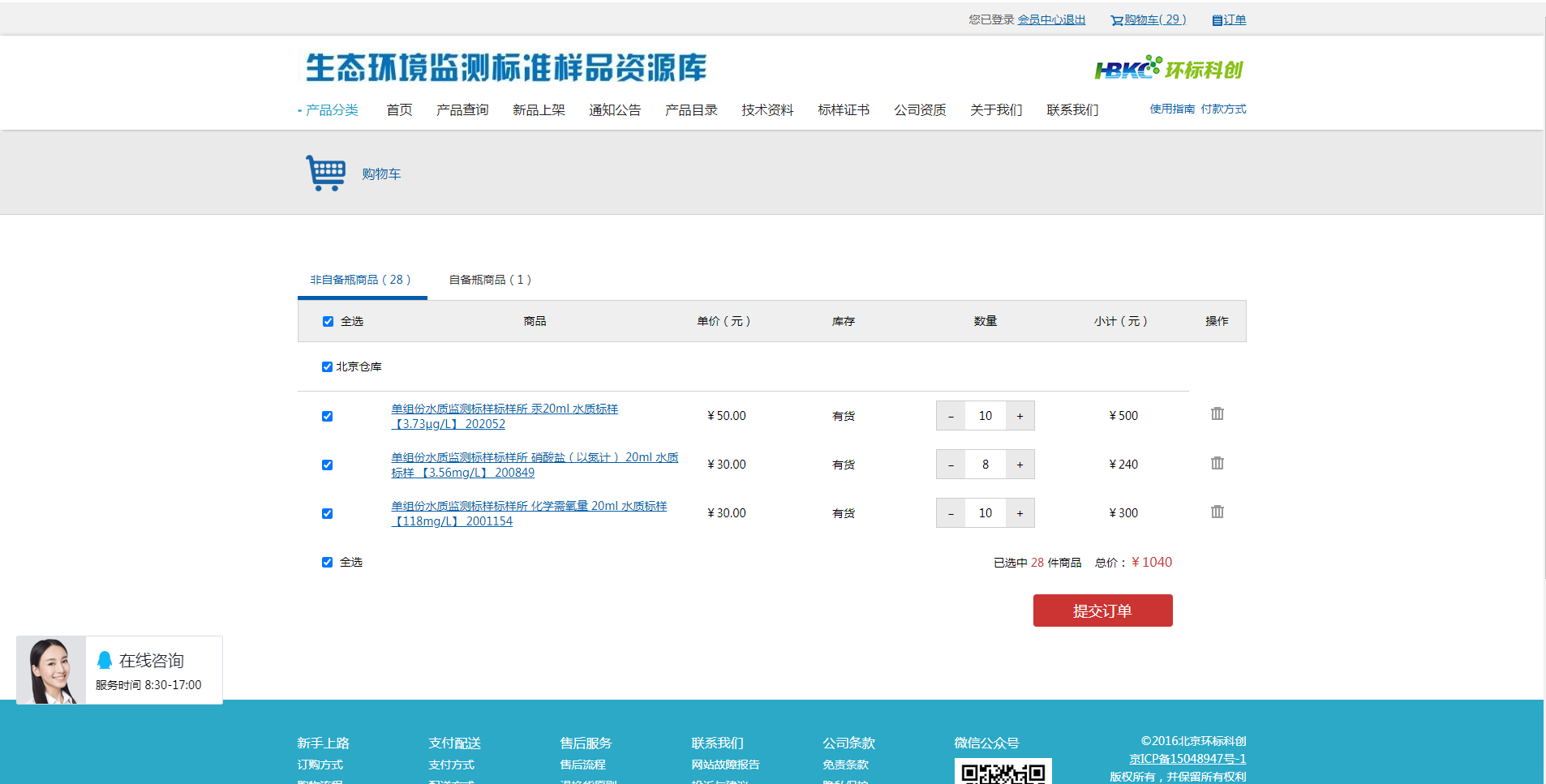 提供環境標準樣品及相關產品的信息查詢、技術資料下載、在線客服交流、在線詢價處理及訂單處理等各類個性化服務。